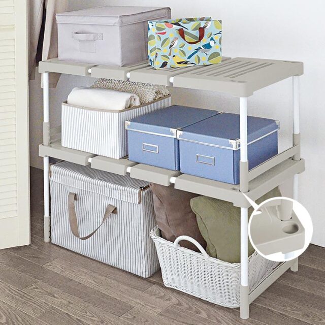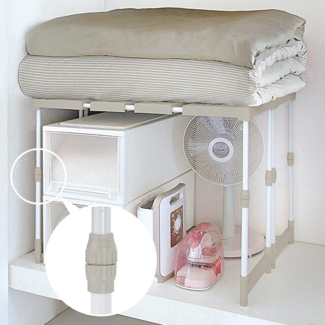クローゼット、押入れのデッドスペースを有効活用できる収納棚です。幅・高さを調節できます。通気性を考慮した形状で湿気対策もバッチリです。
