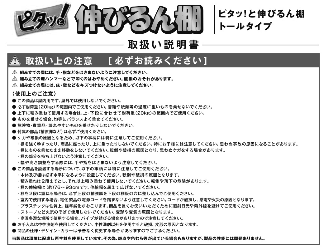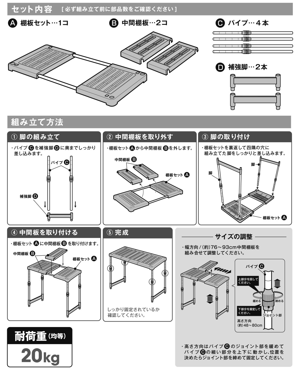 無段階伸縮式で、幅約76~93cmまで、空間に合わせた設置ができます(伸縮幅約17cm)。内部ストッパー機能で抜け落ちを防止します。