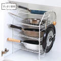 シンク下の扉収納におすすめのフライパンラックです。スチールに粉体塗装を施した丈夫でさびにくいデザイン。斜め設計なので出し入れしやすくなっています。