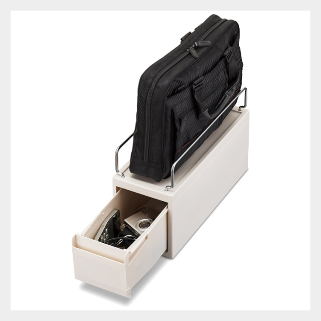 電子機器や文具、ブランケットなど小物収納に最適な引出しに加え、上にはビジネスバッグも置ける便利グッズです。これ1つで2役の使い道が可能です。