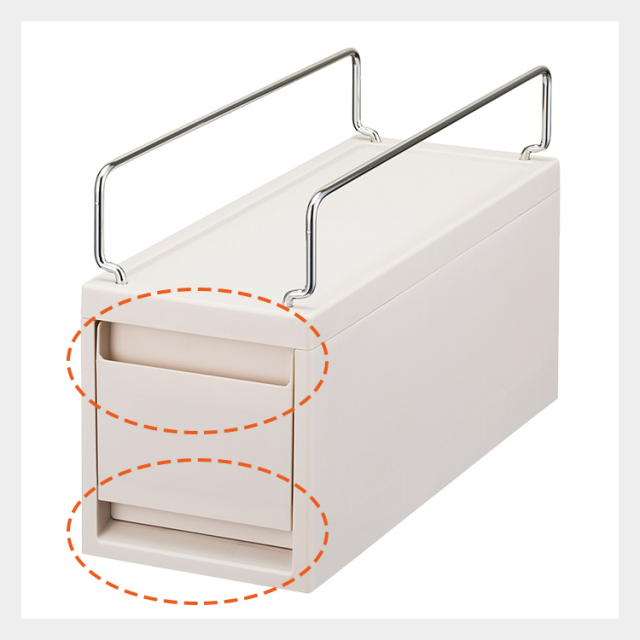 引出しの取っ手は上からでも下からでも引き出せます。設置場所などで引き出しやすい方をお選びください。