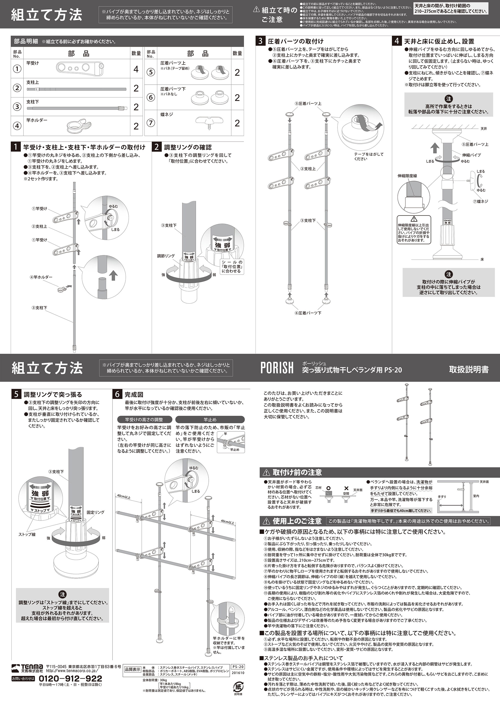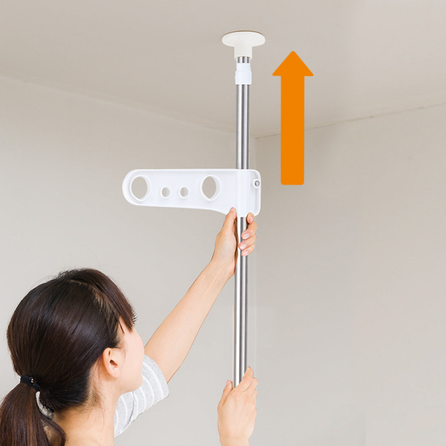 上下に突っ張るだけで簡単に設置できる、ベランダ専用の突っ張り式物干しです。大きな脚形状と吸盤状クッションでしっかりと固定できます。