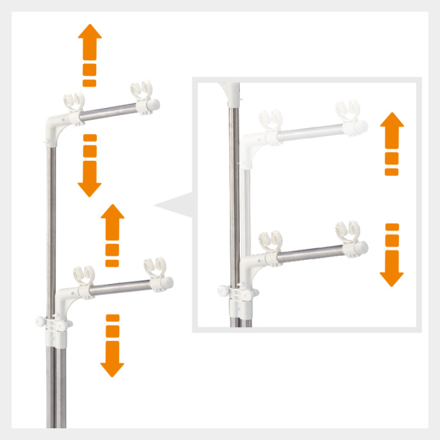 支柱部分は高さ調整自在!干すものや場所、またお客様の身長によって自由に高さが調整できます。