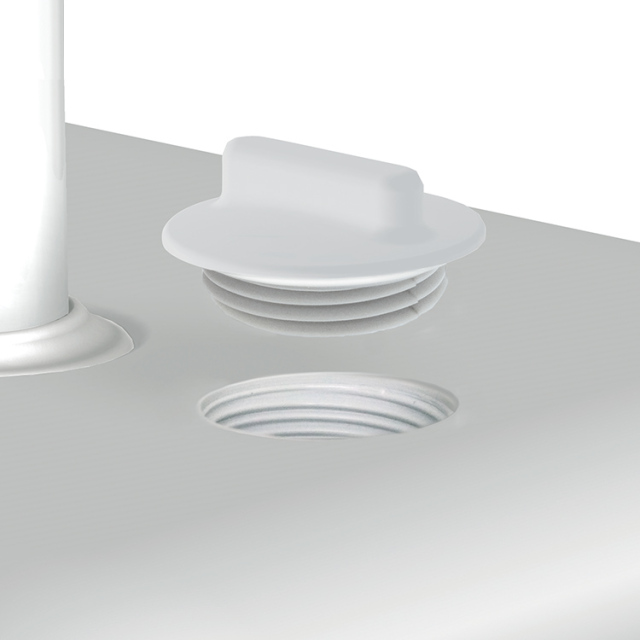 ブロー台のキャップはネジ式なので、重りの水が漏れにくくしっかり締められる設計となっています。また、不意にフタが開く心配もありません。