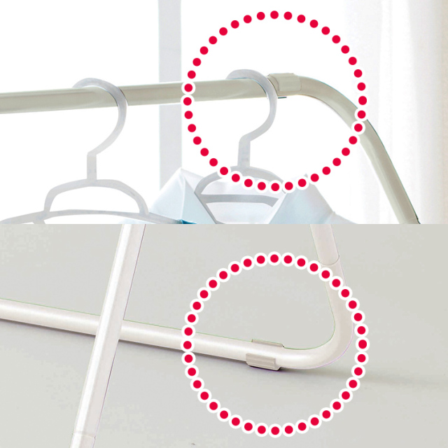 ハンガーを掛ける場所と脚の部分、それぞれにストッパーが付いています。ついつい滑ってしまうという心配を減らせます。