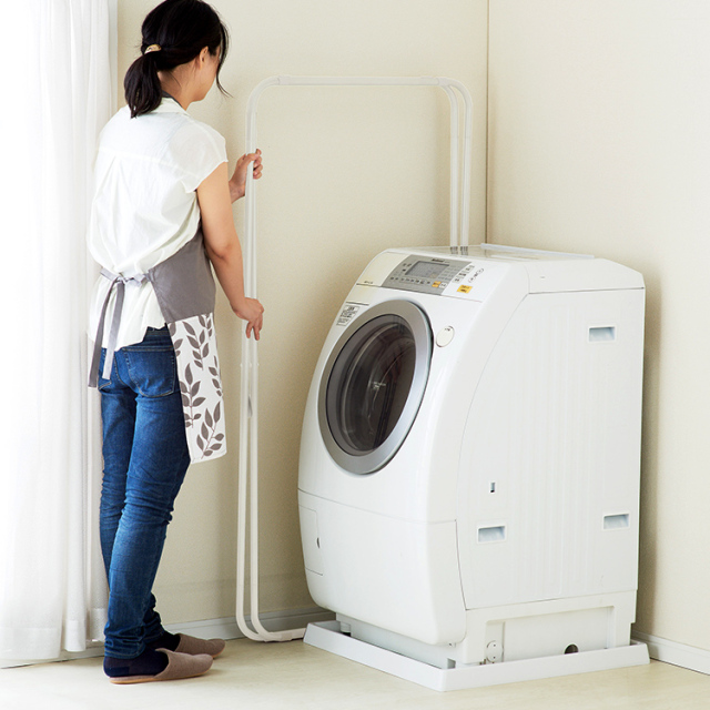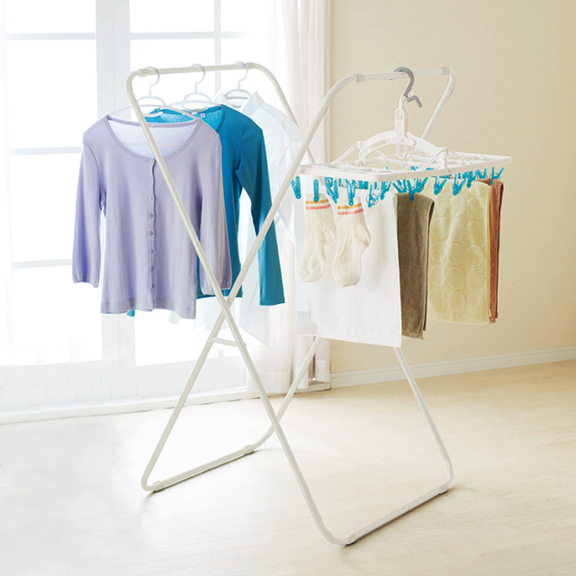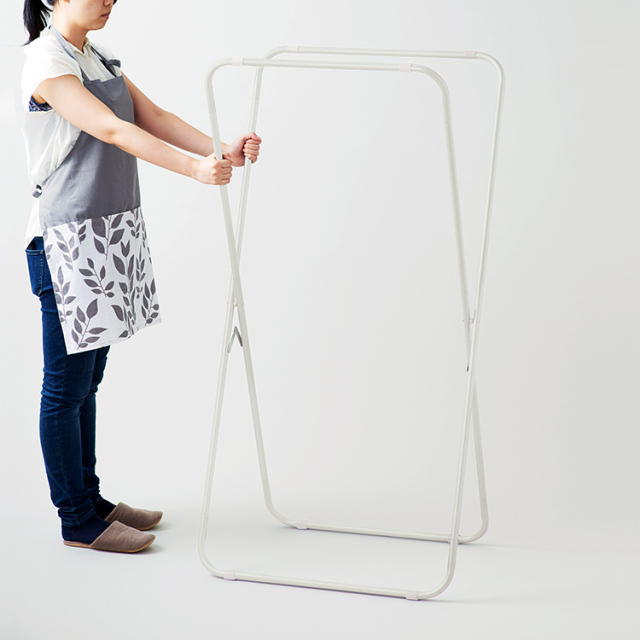 設置が簡単にできるスリムな室内物干しです。簡単に折りたためるので、使わない時はすき間に収納できます。