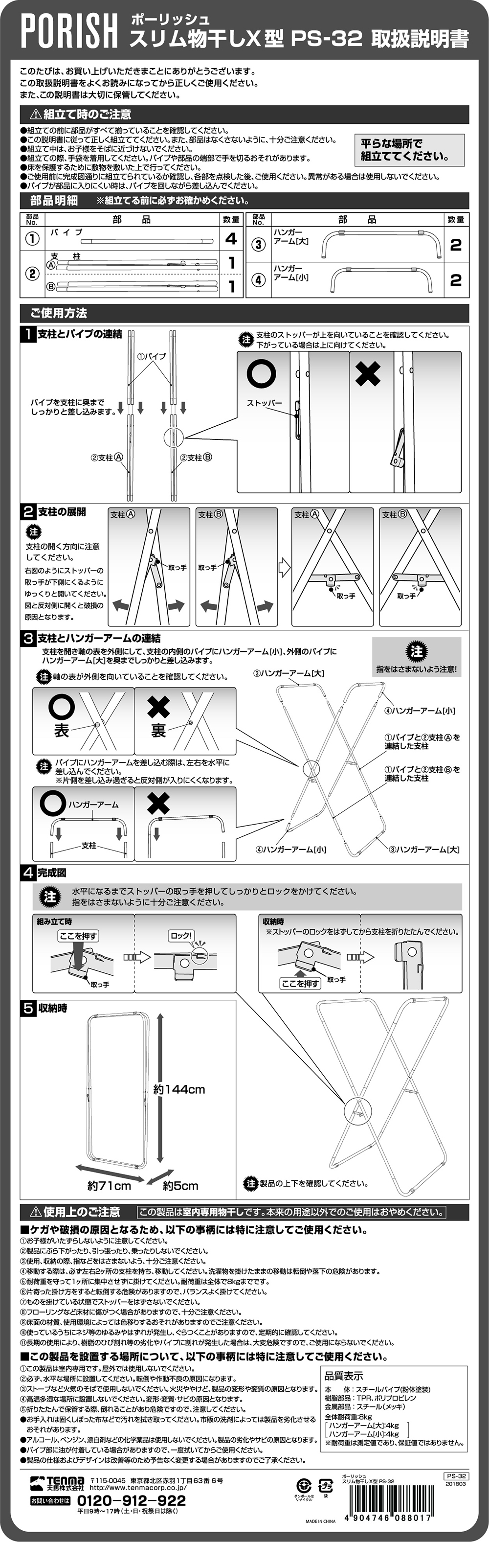 組立てに工具は必要ありません。パイプをはめ込むだけで女性でも簡単に組み立てられます。