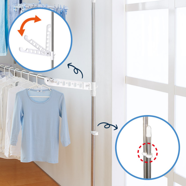 干す量や設置場所によって、竿受けの位置を自由に調節することができます。