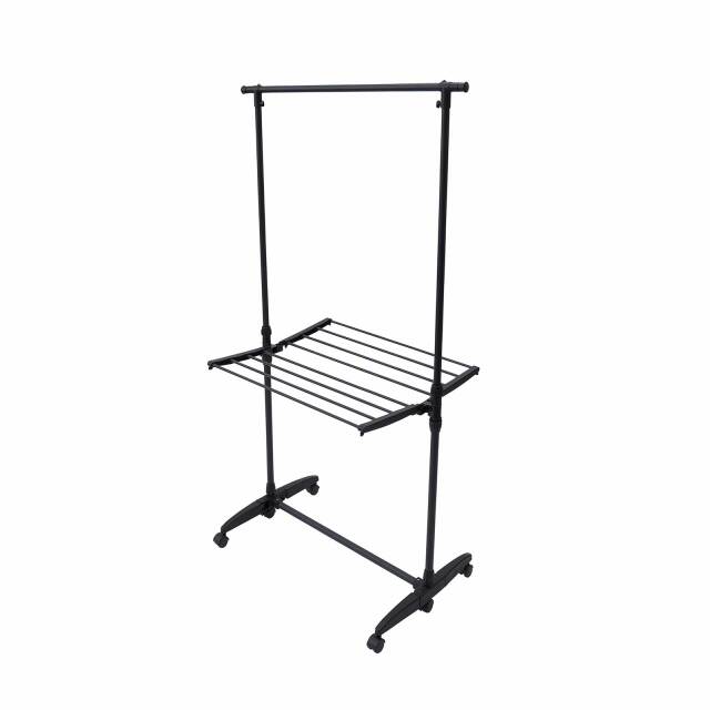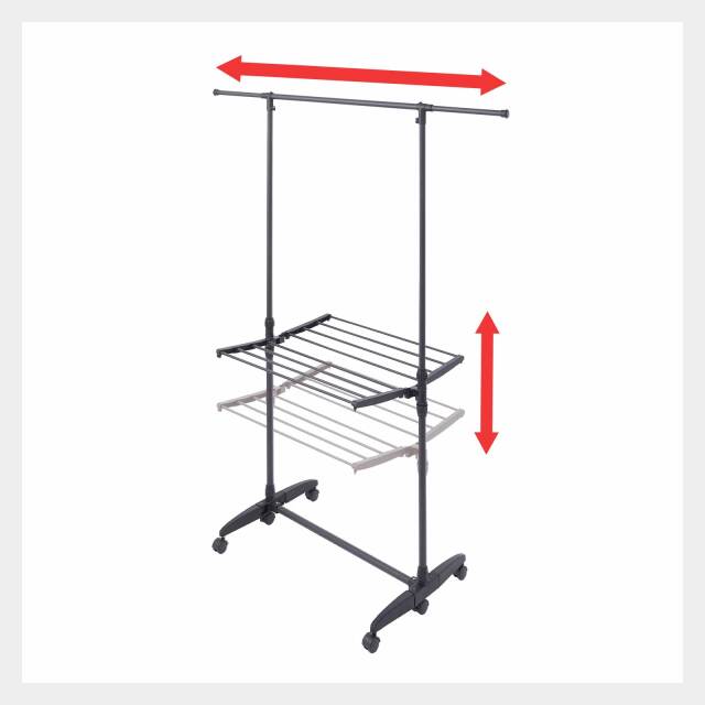 干すものに合わせて幅や高さを調整できる室内物干しです。キャスター付きで移動もスムーズ。使用しない時はスリムに収納もできます。