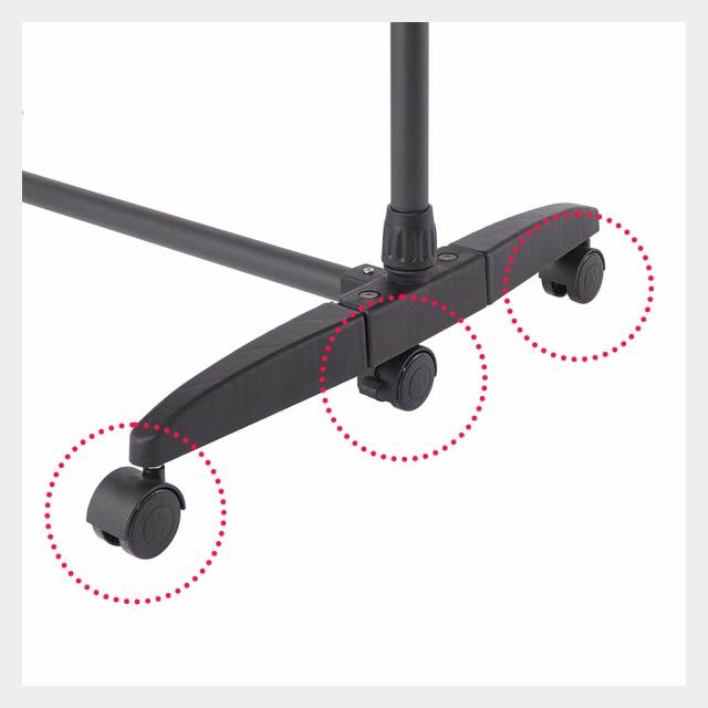 移動を行いやすいよう、キャスターを搭載。洗濯物を干したままでもスムーズに移動が行えます。