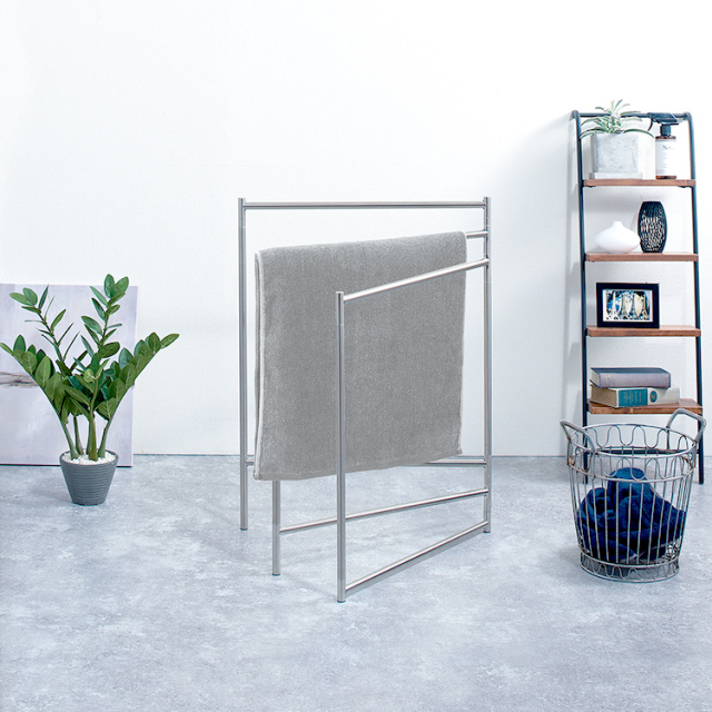 ストレスを感じることなく、横からサッとタオルがかけられます。パネルの開き具合は調節できるので、干したいものや置く場所など用途に合わせて変形できます。 ※タオルバーは十分に開いてご使用ください。(30cm以上推奨)