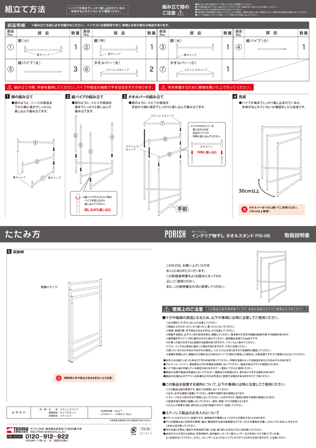 ※タオルバーは十分に開いてご使用ください。(30cm以上推奨) - 組立説明書