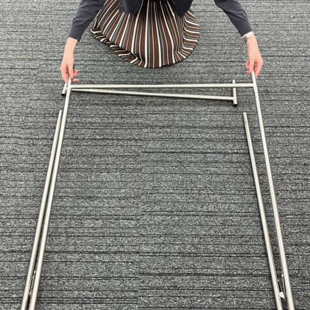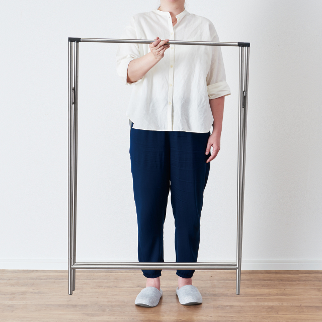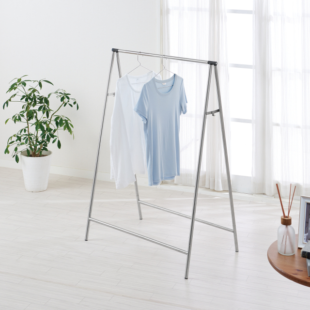 シンプルかつスリムで軽量なふとん干しです。シンプルなデザインなので出しっぱなしにして洋服掛けとしても使用できます。