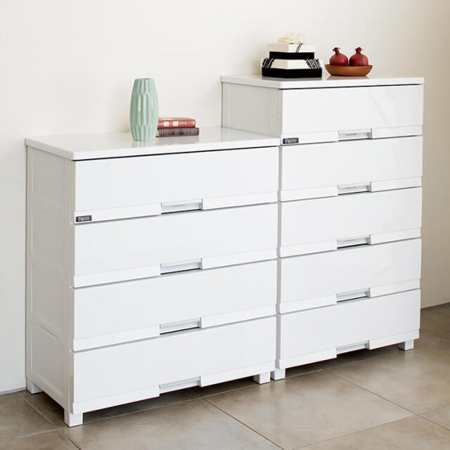 使いやすさと安心感を追及したチェストです。超光沢感を採用した高級感のあるパネルデザイン。埃が入りにくい背・側面壁構造や引出しのロック仕様など、機能面も充実しています。