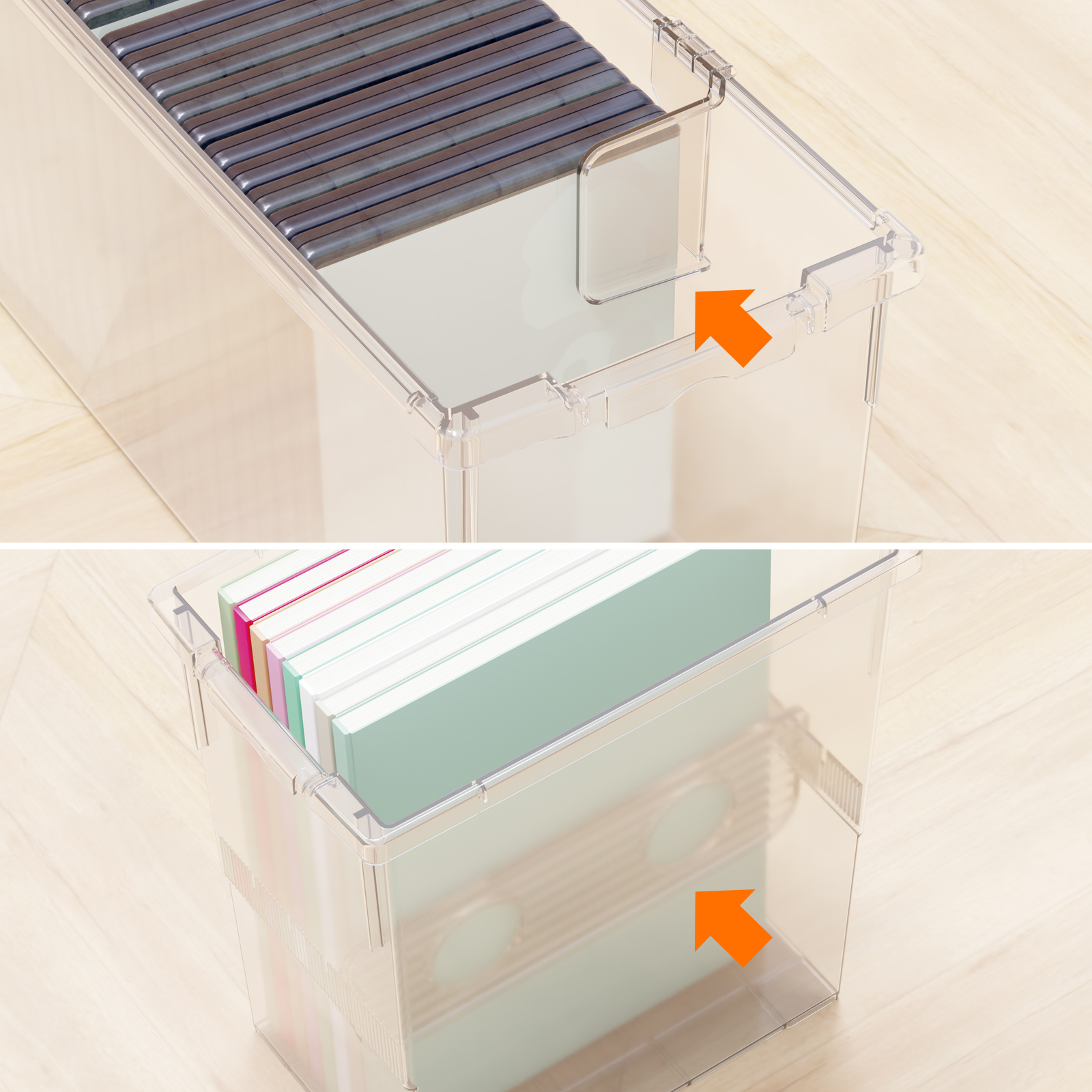 せっかく収納しても、ケースの中でバラバラになるのはイヤですよね。いれと庫は仕切り板付きだから、収納物が倒れるのを防止します。