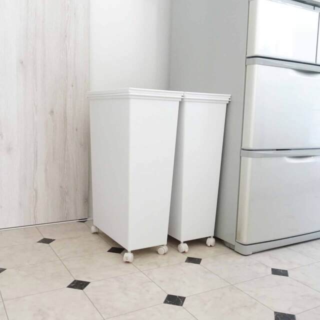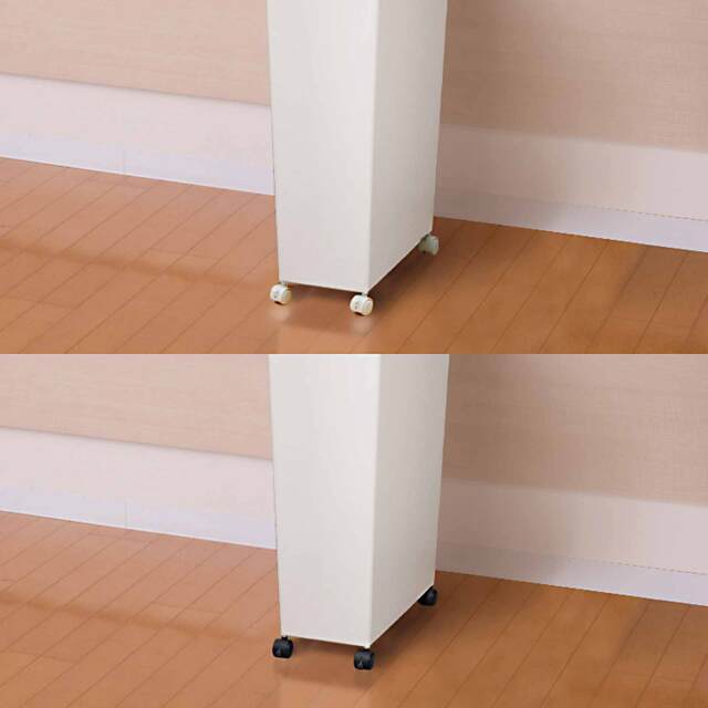キャスターが前方後方に設置できます。掃除やゴミ袋の入れ替え時に取り出しやすく便利です。別売りで2色展開の「差込式キャスター30」に対応しています。