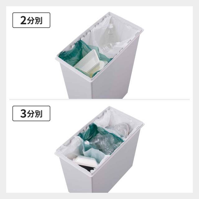 波上ホルダーが付いているので、袋をしっかり固定することができます。また、分別して使用することも可能です。袋の交換も簡単です。