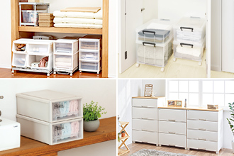 生活雑貨などの大きな物はより頑丈なフタ式の収納ケースに、大きめのタオルは引き出し式の収納ケースにしまうなど、それぞれ使い勝手の良い収納ケースに保管することも大切です。