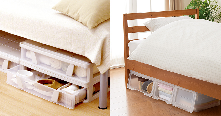 ここでは、ベッド下収納に適したアイテムをご紹介しますので、それぞれベッド下の高さや広さ、お部屋の環境などを確認し、見直してみましょう。