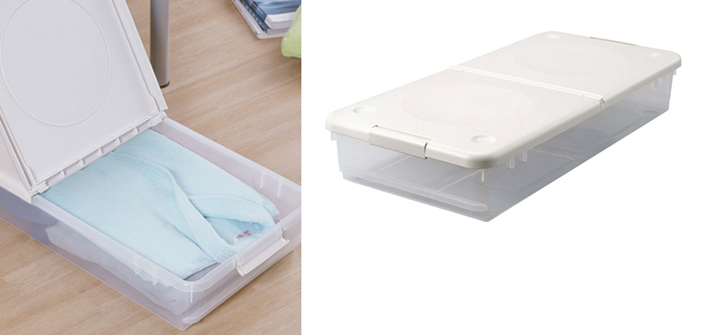 移動時や持ち上げる時に便利な外れにくいアップロック式で、45Sロングはふたが半分開閉可能(前後両方が開閉)なため、ベッド下に収納していても取り出しやすい仕様です。同シリーズの他のケースとも組み合わせて使用することができます。