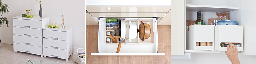 テンマフィッツワールドの白い収納ケースや白い収納グッズでリビングやキッチンを統一し、オシャレで清潔感のある生活空間を実現してはいかがですか?